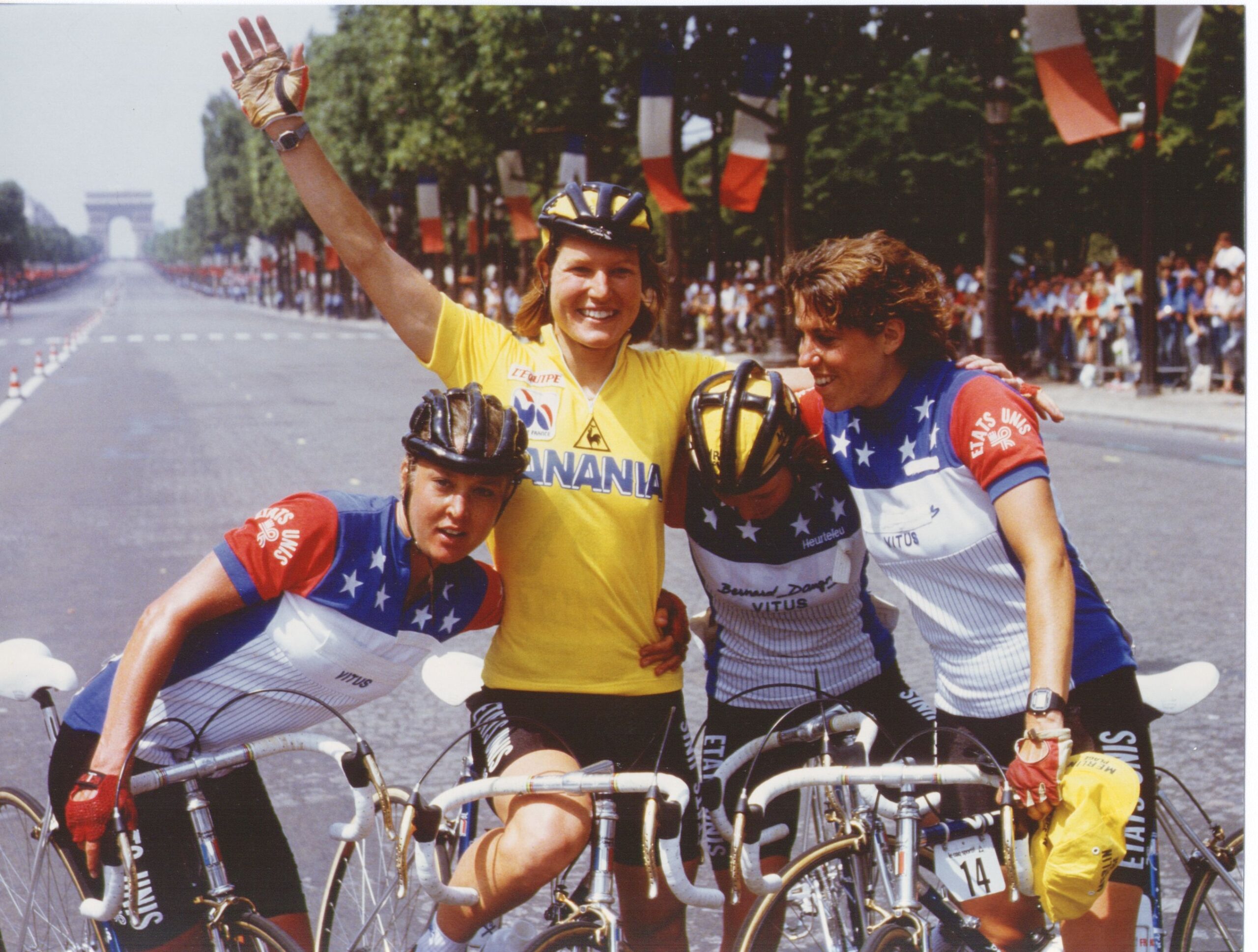 Marianne Martin wearing the Yellow Jersey at the 1984 Tour de France Feminin