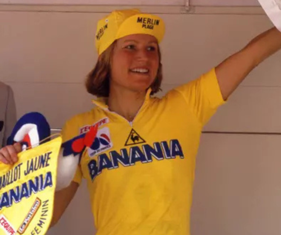Marianne Martin wearing the Yellow Jersey at the 1984 Tour de France Feminin